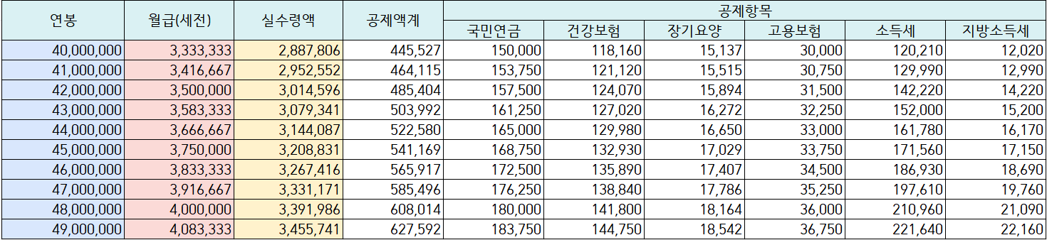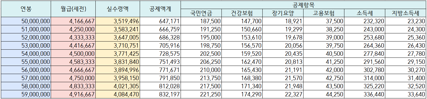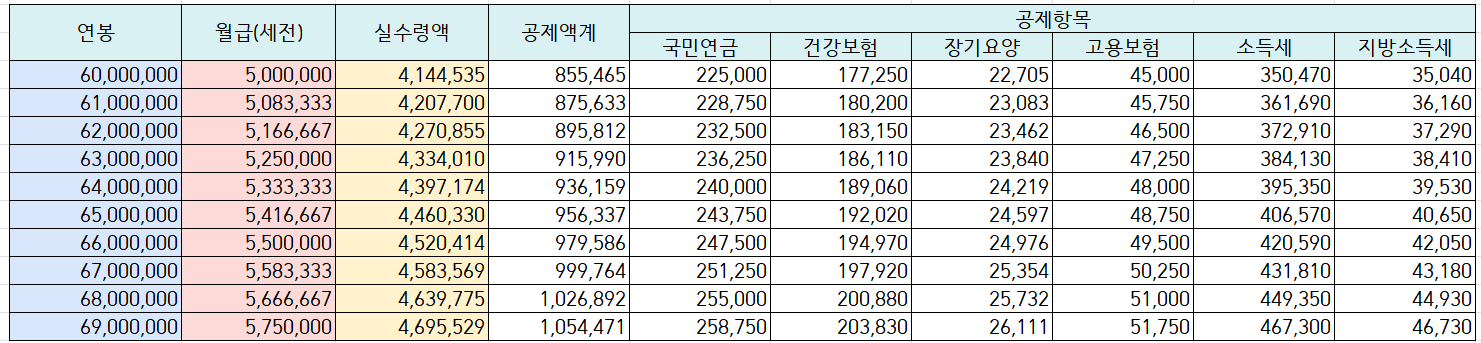 - 연봉에서 공제율 파악: 각종 공제 항목의 비율은 연봉에 따라 달라집니다. 일반적으로 연봉이 높을수록 세율이 증가합니다.