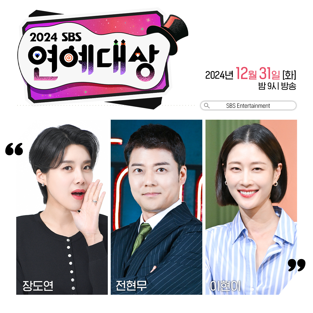 - SBS 연예대상: 12월 31일(화) 밤 9시, MC 전현무, 이현이, 장도연