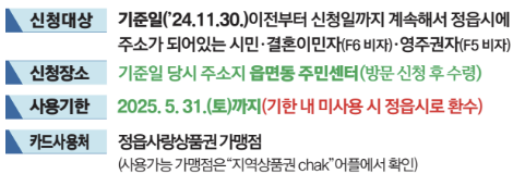 - 24.11.30 부터 정읍시에 주민등록이 되어 있는 거주민