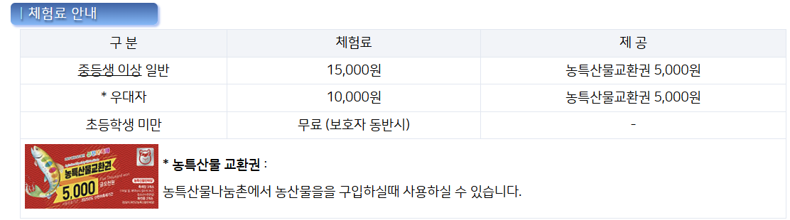 - 준비물: 낚싯대는 현장에서 대여 가능
